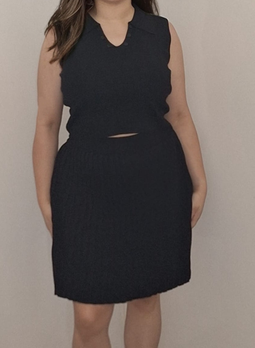 Ontdek de Lottie's Two Pieces Set, een tijdloze combinatie van een chic zwart rokje en een bijpassend zwart topje. Deze set is de perfecte keuze voor een moeiteloze en elegante look, geschikt voor zowel casual als speciale gelegenheden. Het rokje valt flatterend en de top biedt een comfortabele pasvorm, waardoor je je de hele dag geweldig voelt. Met de Lottie's Set ben je altijd stijlvol gekleed, ongeacht de gelegenheid!